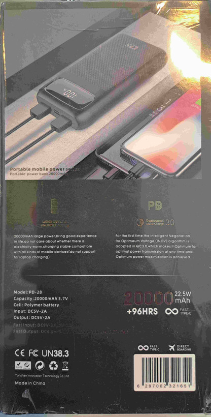 پاوربانک 20000mAh مدل PD-28 یک همراه مطمئن برای شارژ روزانه دستگاههای هوشمند شماست. این پاوربانک با ظرفیت بسیار بالا و طراحی مدرن، خیال شما را از بابت تمام شدن شارژ گوشی، تبلت و سایر دستگاههای دیجیتال راحت میکند.